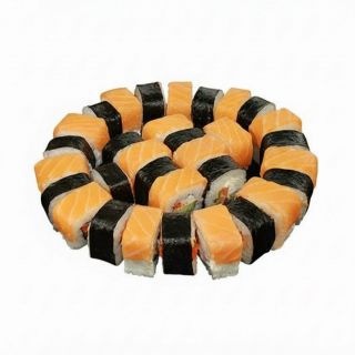 Ролл Ямайка ( нори,рис,лосось,сливочный сыр,икра масаго,огурец)